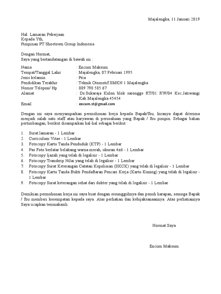 Contoh Surat Lamaran Kerja Di Pt Soetwon Kasokandel : Lowongan Kerja Pt Shoetown Ligung Indonesia 2021 / Kumpulan gambar contoh surat lamaran kerja di chevron yang benar 2019.
